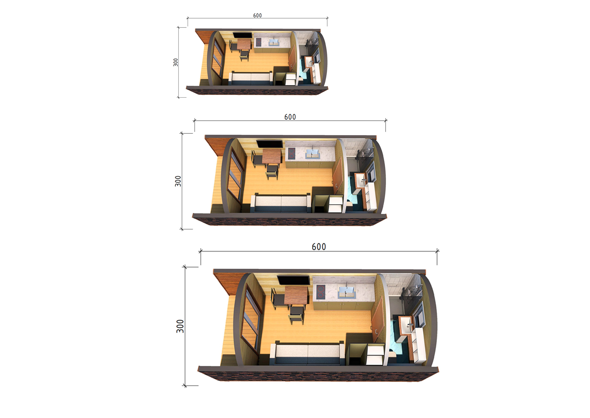 Nuestras cápsulas vienen en 4 diseños de planos de planta estándar, que también podemos personalizar según sus requisitos.
